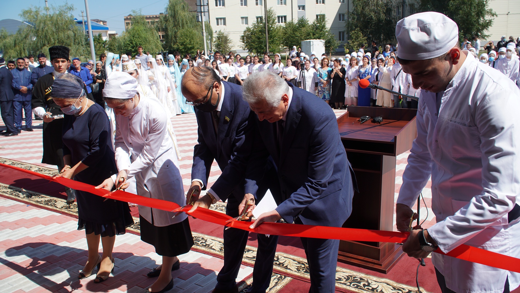 В торжественной церемонии открытия приняли участие Главный федеральный инспектор по Республике Ингушетия Сергей Гончаров, Председатель Народного Собрания РИ Магамет Яндиев, Руководитель Администрации Главы РИ Джамбулат Оздоев, вице-премьер Марьям Амриева, мэр г.Магас Усман Аушев и мн. др.